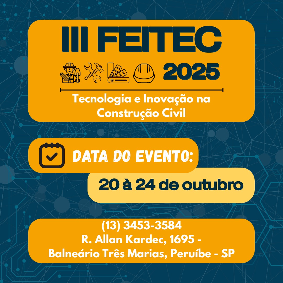 🚧 A 3ª FEITEC está chegando para transformar sua visão sobre a construção civil!Prepare-se para um evento imperdível que reunirá estudantes, profissionais e apaixonados pela construção civil em uma semana repleta de conhecimento,...