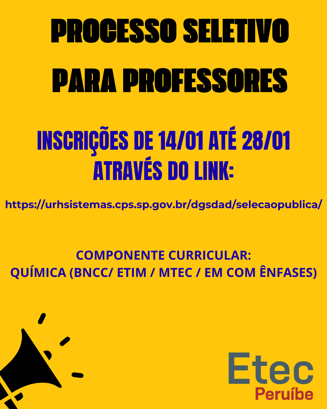 >> Selecionar em Escolas Técnicas (Etecs) PROCESSO SELETIVO SIMPLIFICADO PARA DOCENTES